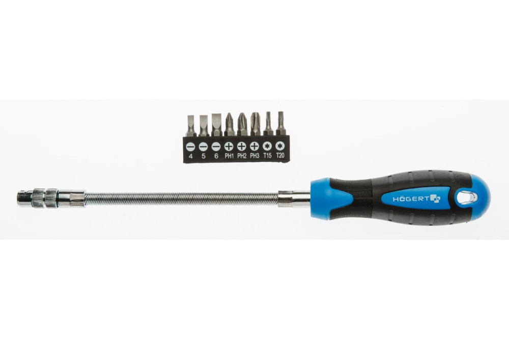 HÖGERT HT1S090 Rugalmas tengelyű csavarhúzó és cserélhető bitek