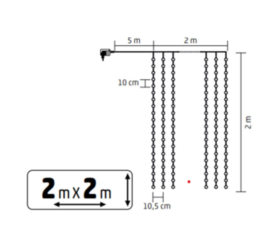 A fényfüggöny IP44-es védettségű kültéri hálózati adapterrel működik, amely biztonságos és tartós használatotgarantál még esős, nedves időben is.