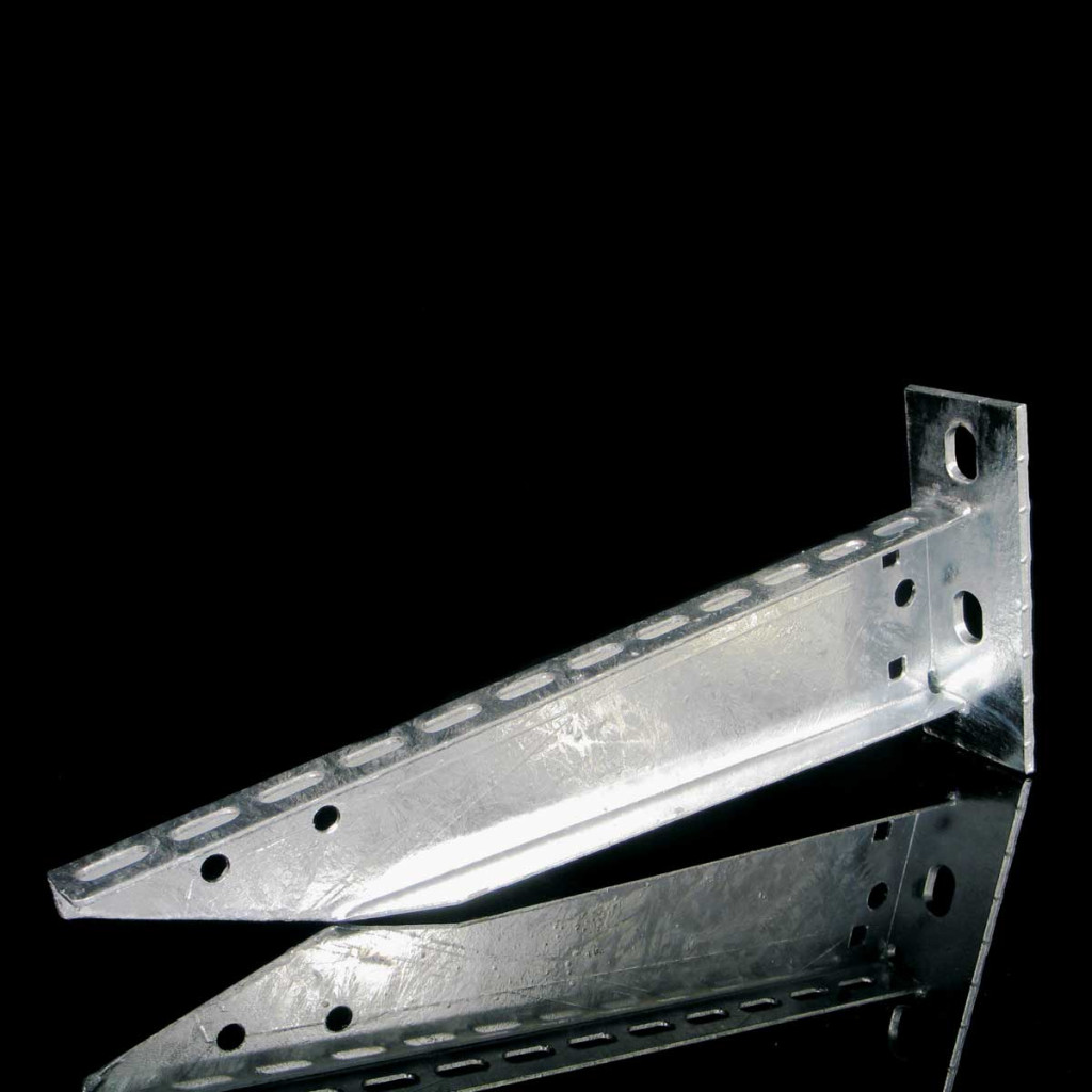 Bracket for assembly of cable routes with width 100 mm on the walls, higher mechanical resistance, surface treatment hot dip galvanized