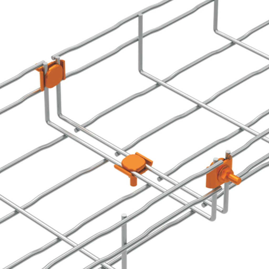 Coupling intended for connection of wire cable trays, allows easy and secure connection of wire cable trays, surface treatment bichromatic galvanized