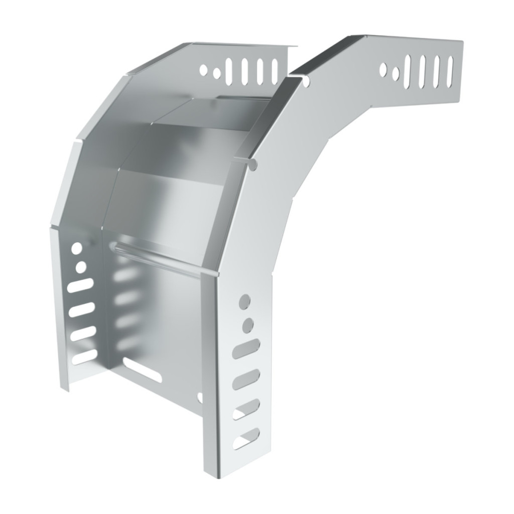 Low elbow for bending of the route in vertical direction at the angle of 90° in decreasing direction. Elbow is intended for cable trays with width 35x150, superficial treatment sendzimir, for connection of elbow and cable tray it is not necessary to use special connectors.