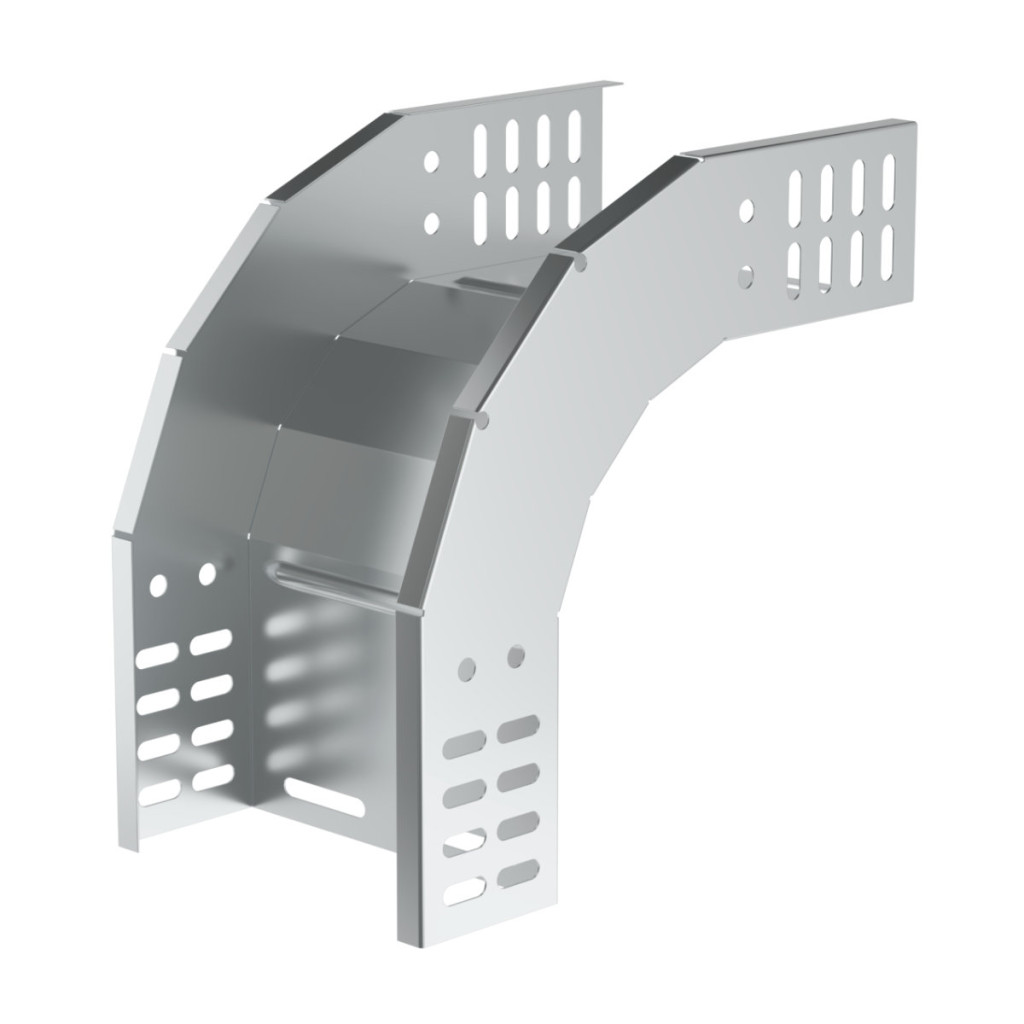 Low elbow for bending of the route in vertical direction at the angle of 90° in decreasing direction. Elbow is intended for cable trays with width 60x150, superficial treatment hot dip galvanized, for connection of elbow and cable tray it is not necessary to use special connectors.
