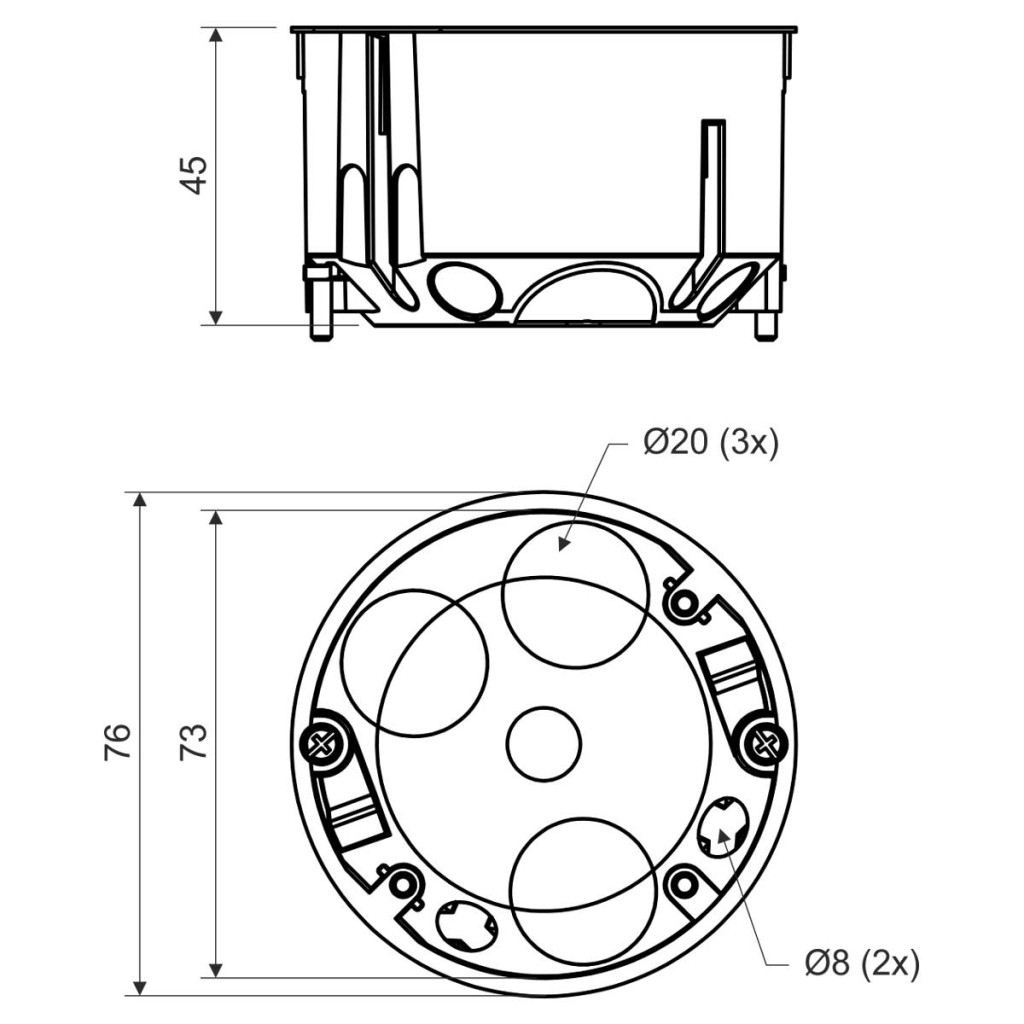 Manufacturer KOPOSMaterial PPDiameter 73 mmGyártói cikkszám KU 68 LD/1HF_HAHőállóság -5 – 60 °CDepth 45 mmSzabványok ČSN EN 60 670-1Tűzveszélyességi osztály A1-FVonalkód / EAN-kód 8595568910585Letölthető tartalmak Rögzítési módszer - EF000003 Üreges fal (Hollow wall)Szín - EF000007 Fehér (White)Szélesség - EF000008 -Modell - EF000010 Egyszeres (Single)Halogénmentes - EF000025 IgenForma - EF000051 Kerek (Round)Felületvédelem - EF000139 -Átmérő - EF000551 73Felszerelt vele - EF000557 Nincs (None)Építési típus - EF000767 Készülék csatlakozó doboz (kerek/négyszögletes) (Device connection box (round/square))Belső mélység - EF001131 44Csatlakoztatható - EF001229 -Hossz - EF001438 -Áramkör integritás - EF001613 Nincs (None)Anyag - EF002169 Műanyag (Plastic)Kapcsolószekrény felszerelése - EF004508 Csavarozás (Screwing)Fedél rögzítése - EF004586 -Villamos szerelvények száma - EF004702 1Lámpatest kampó szerelés - EF004902 NemMax. vezeték keresztmetszet - EF004969 4Szűréssel - EF005032 NemCsavarokkal - EF005066 IgenLégmentes - EF005430 IgenMélység - EF005457 45 - 45Kábelátmérőhöz megfelelő - EF005466 7 - 21Védettségi fokozat (IP) - EF005474 -Cső átmérő - EF005496 Egyéb (Other)Hátsó beszívás - EF005604 IgenCsőzárás - EF005657 NemSpeciális alkalmazás - EF006205 -Szorító pozíció rögzített - EF007889 -A kampó pólusainak száma - EF008016 -Fúvóka - EF008076 -Forgógyűrűvel ellátva - EF009204 -Ház átfedés tömítős membránnal - EF009206 NemHáz átnyomó fúvókán keresztül - EF009207 NemHáz átvezetés lépcsős membránnal - EF009208 NemCsőzárás opcionális - EF009209 NemBeépített kifolyók száma - EF009210 -Fedőmodell - EF009212 -Házon keresztüli áteresztés kitörési nyíláson keresztül - EF009763 IgenÁtlátszó burkolat - EF011401 -Védelem foka (NEMA) - EF011959 -Bevezetések száma 5Plombálható -névleges feszültség <= 400 VEF005060 -Gyártó KOPOSItem number KOPOSKU-68-LD-1HF-HA