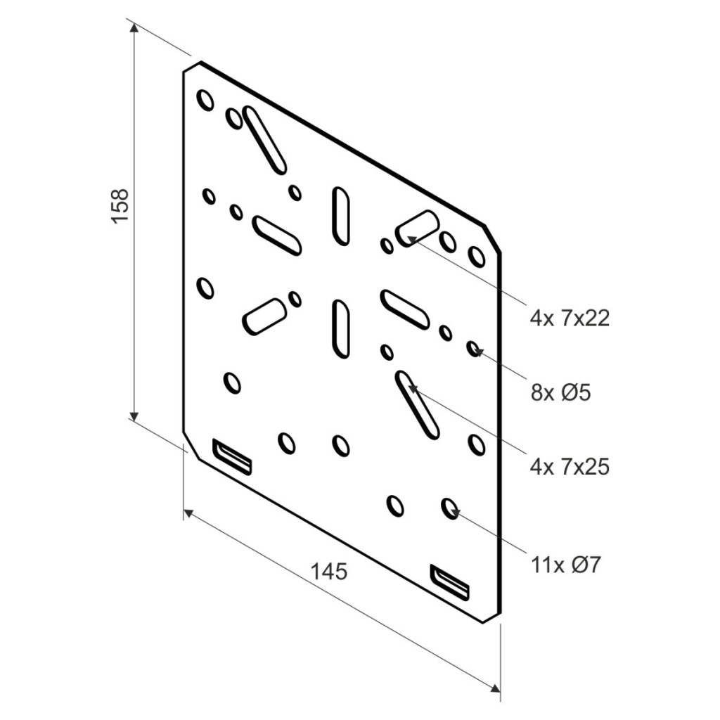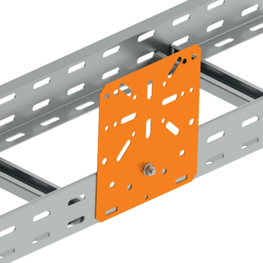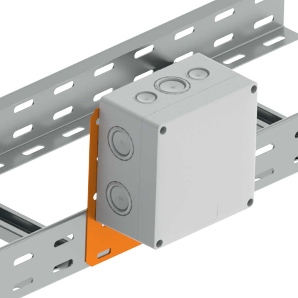 Mounting plate is intended for installation of wiring boxes to the sidewall of the cable trays or cable ladders, fixation to the sidewall is done by NSM 6X10 bolts or by KSV clamp. ZM surface finish (galvanizing Zn+Al+Mg) is intended for products with ZM surface finish or hot-dip galvanized products.
