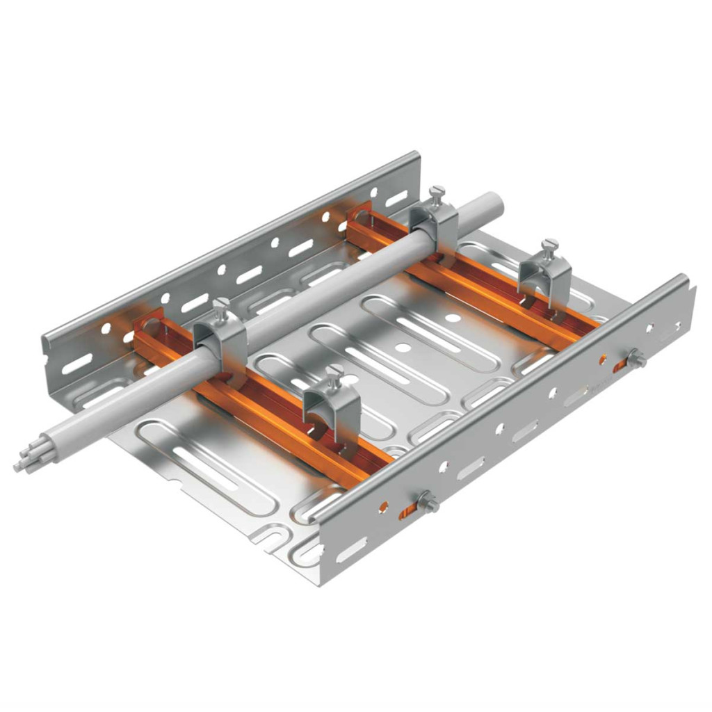 Load bearing profile for clamps of cables into the cable trays, intended for fixation of cables by clamps in the cable trays with width 125 mm, surface treatment Magnelis®