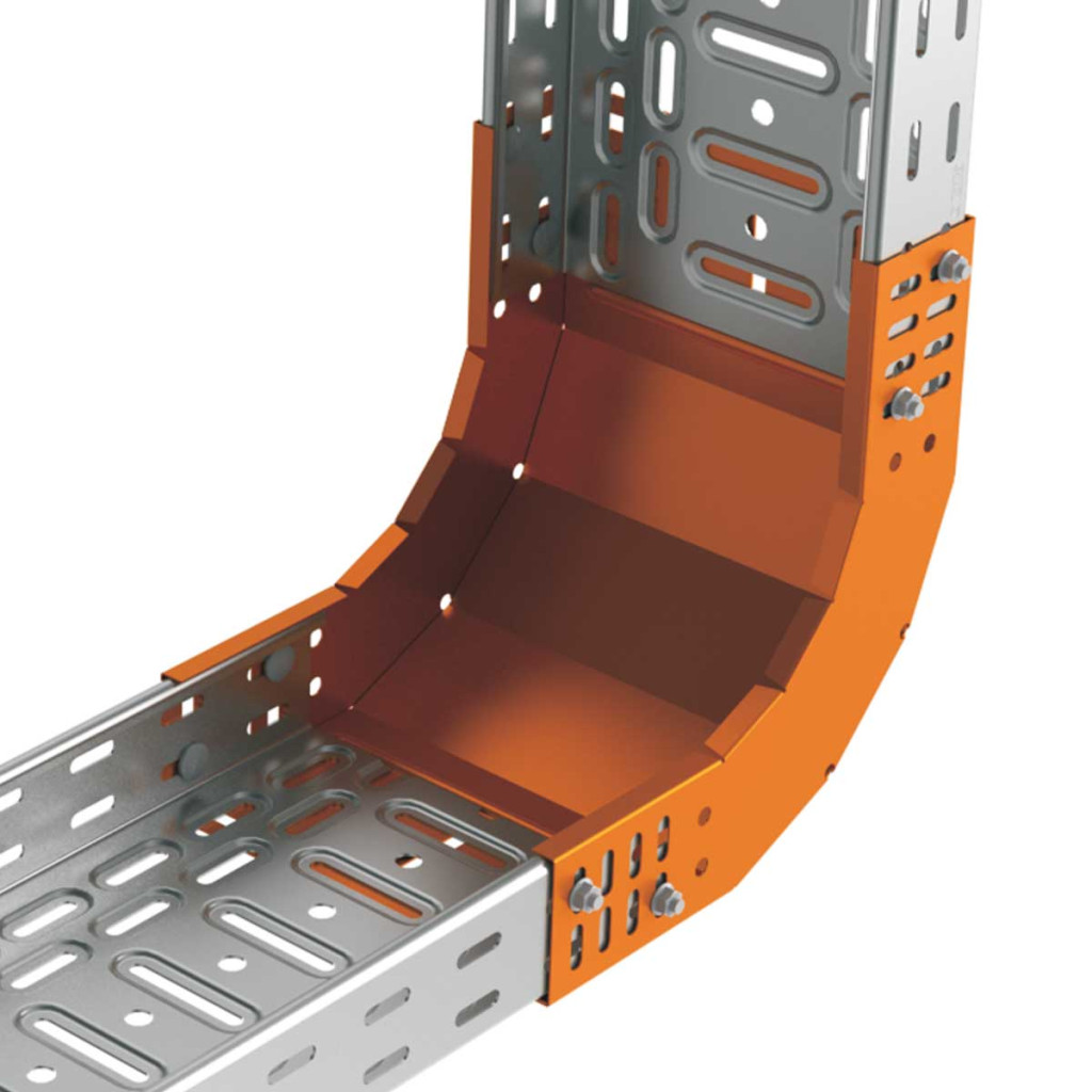 Rising elbow for cable trays with dimension 85x300, surface treatment sendzimir