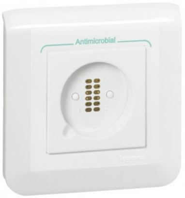 LEGRAND 078247L Program Mosaic magnetic socket cat. No. 078242/44 for hand-held nurse call point, supplied with frame and mounting flange, antimicrobial