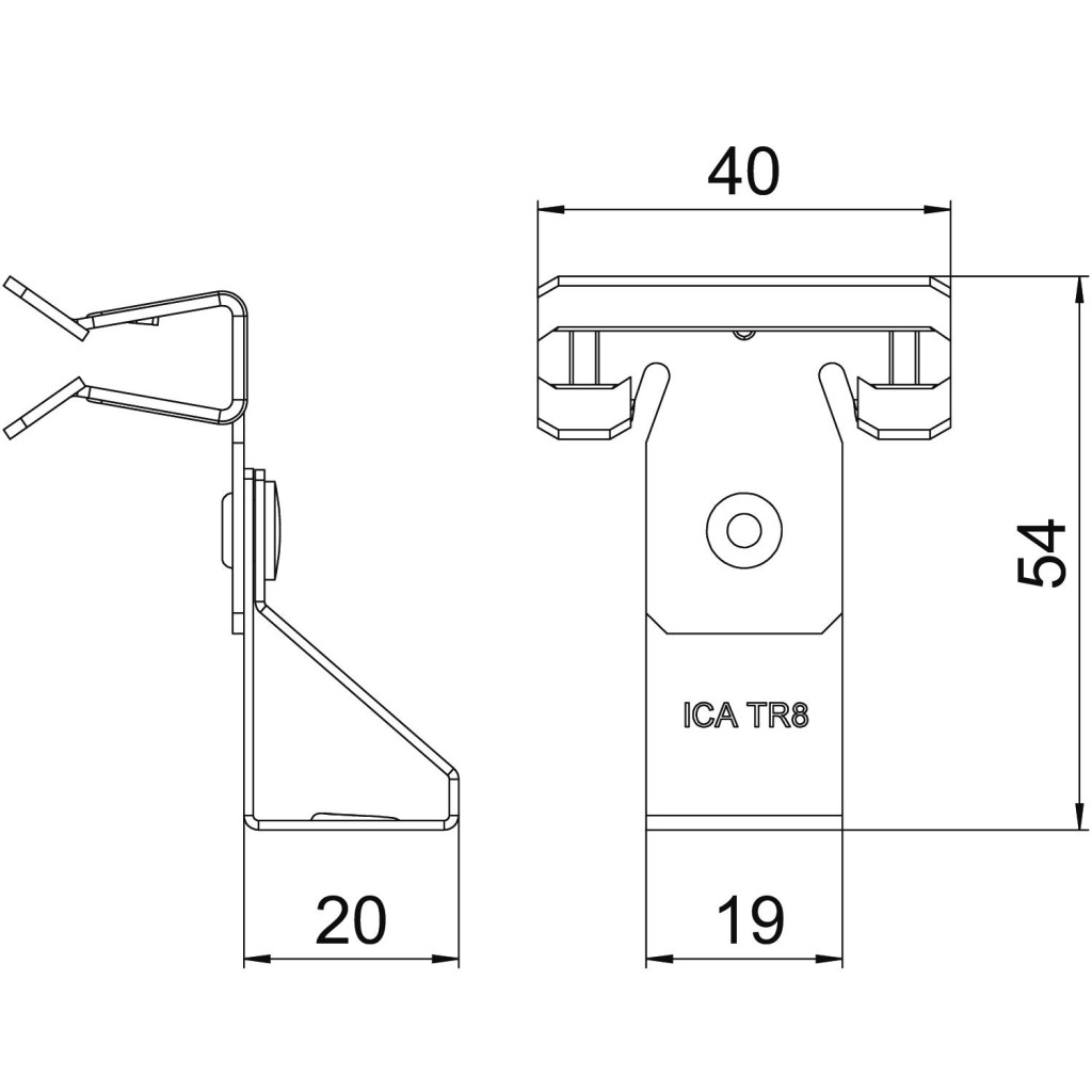 Support clamp with threaded rod seat for individual mounting solutions. Fastening through knocking onto steel girders.