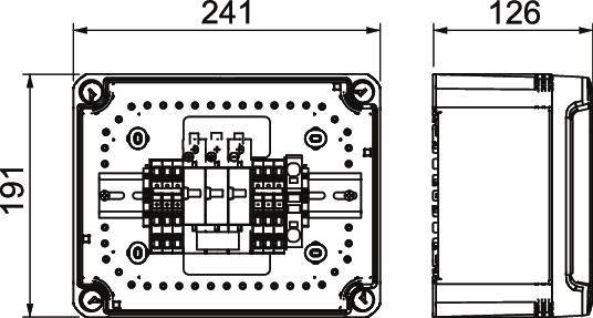 • 1 protection device with 8 push-in terminals of up to 6 mm² pre-installed in the housing, up to 41 A DC per terminal