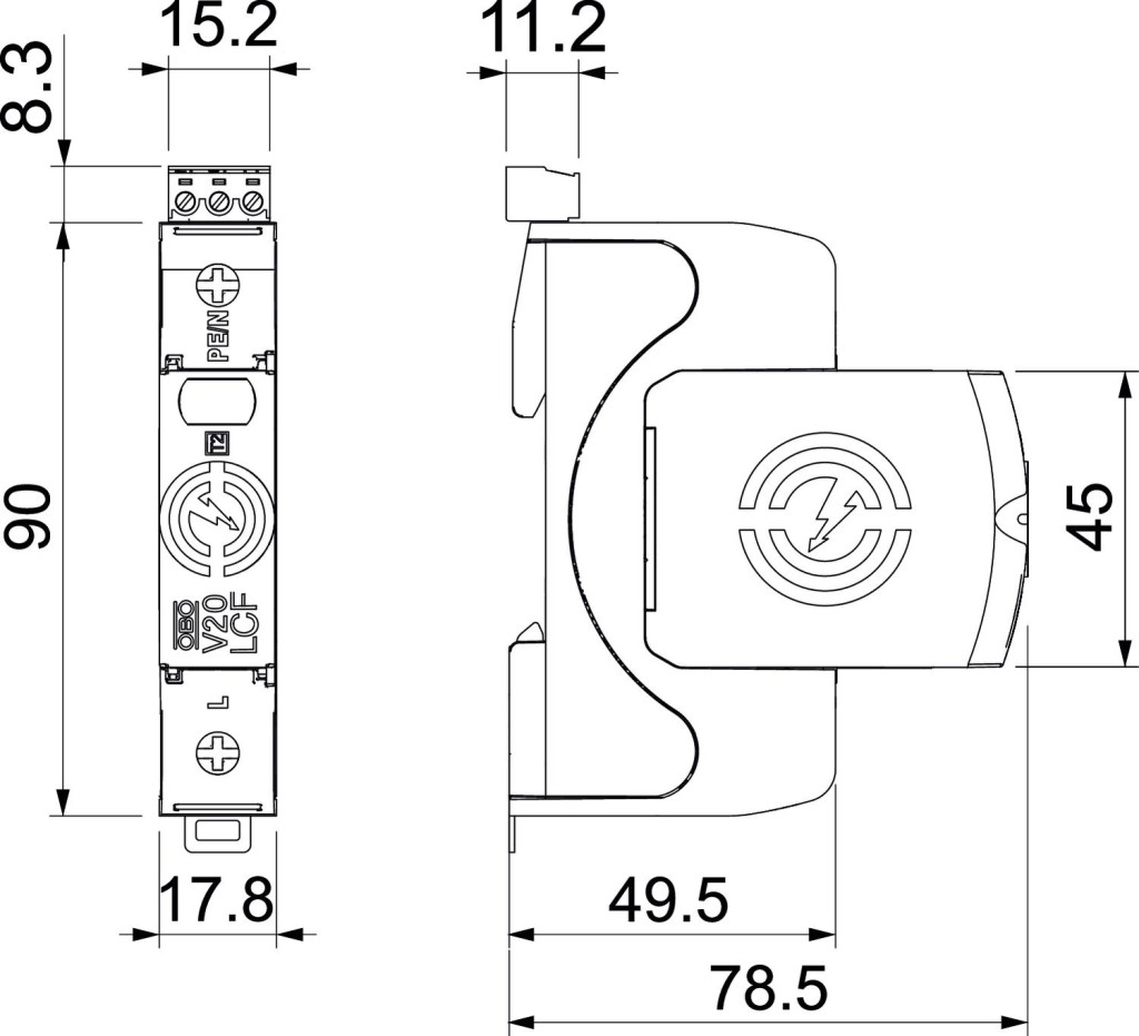 • Pólusonkénti levezetőképesség maximum 40 kA (8/20) a nagyteljesítményű varisztoroknak köszönhetően