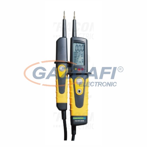 TRACON PANMV-690B 2 pólusú feszültségvizsgáló LCD kijelző és AVK teszter, 12-690V AC/DC, 30mA FI-Test