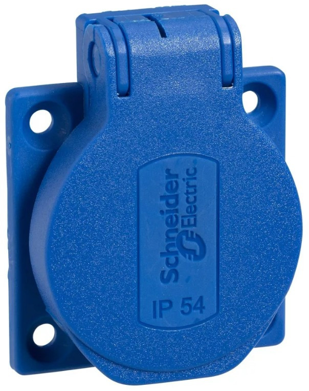 SCHNEIDER PKN51B PRATIKA Háztartási aljzat, 2P+F, 50x50, hátsó meghúzással, kék, IP54, francia