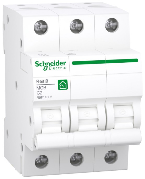 Ez a termék egy Resi9 kisfeszültségű kismegszakító/automata (MCB). Ez az 1P,2P,3P,4P kismegszakítók C és B kioldási görbével. Az Icn névleges rövidzárlati megszakítókapacitása legfeljebb 4,5kA 230 V-os váltóáram esetén, az EN/IEC 60898-1 szabványnak megfelelően. Ez a termék megfelel az EN/IEC 60898-1 szabványnak. Ez a kismegszakító védi az áramkört a rövidzárlattól és a túlterheléstől is egyaránt. A Resi9 kettős csatlakozású alsó betáplálási rendszerű, amely a villás fésűs gyűjtősíneknek köszönhetően minimalizált huzalozást igényel. A Resi9 az egyik legelterjedtebb lakossági/kivitelezői és társasházakban használt kismegszakító/automata Magyarországon.Elektromos élettartama akár 4000 ciklus is lehet, mechanikai élettartama pedig akár 10 000 ciklus is lehet. Az Ue üzemi feszültség 230 V~. Az Ui névleges szigetelési feszültség 440 V~. Az üzemi frekvencia 50 Hz vagy 60 Hz. A terméket DIN sínre lehet felszerelni. Szélessége 1,2,3,4 modul. A termék színe fehér (RAL9003). A méret (szélesség) 18 mm x (magasság) 85 mm x (mélység) 75 mm. Az IEC 60529 szabvány szerint a szekrényben IP20 és IP40 védettségi fokozatú. Az üzemi hőmérséklet -25°C és 60°C között van. Tárolási hőmérséklet: -40-80°C. A terméket az európai uniós piacok területén az adott hulladékgyűjtési szabályozásnak megfelelően kell leselejtezni, és nem szabad a háztartási hulladékba dobni.