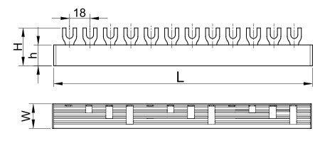 TRACON TFSS-3-12 Soroló sín - csapos kivitelű max.63A, 230/400VAC, 3P, 12modul, 215mm
