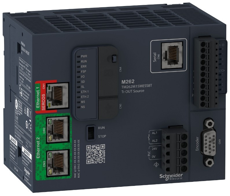 SCHNEIDER TM262M15MESS8T Modicon M262 mozgásvezérlő PLC, 8 I/O, 1 incr/SSI enkóder be, max. 4 tengely, 1xSercos, 2xEth/IP, 1xRS232/RS485