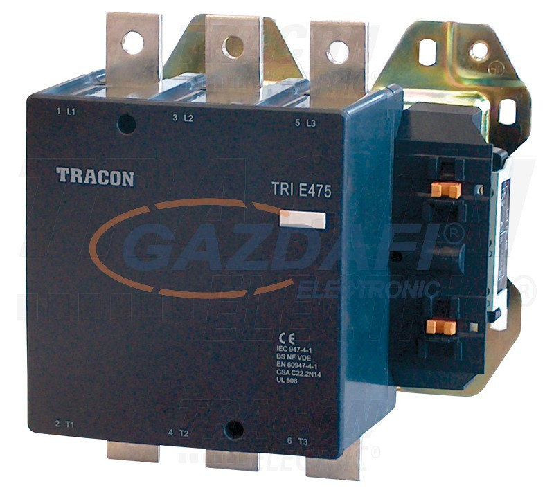 TRACON TR1E475E7 Nagyáramú kontaktor 415V, 50Hz, 475A, 250kW, 48V AC, 3×NO+1×NO