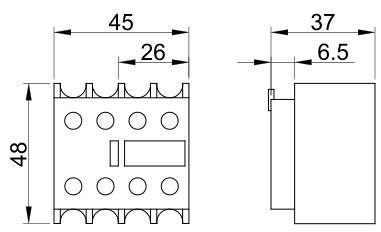 TRACON TR6DN04 Homlokoldali segédérintkező TR1D/F és TR1E kontaktorokhoz 230V, 50Hz, 2A, 4×NC