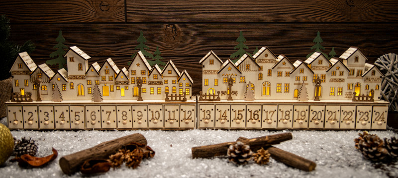 TRACON CHRACD10WW LED karácsonyi adventi kalendárium,falu, elemes (X24008) Timer 6+18h, 12LED, 3000K, 2xAAA