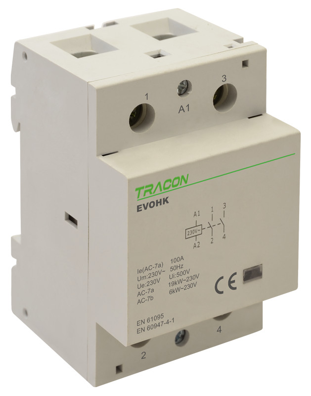 TRACON EVOHK2-100 Installációs kontaktor 230V, 50Hz, 3 Mod, 2×NO, AC1/AC7a, 100A,