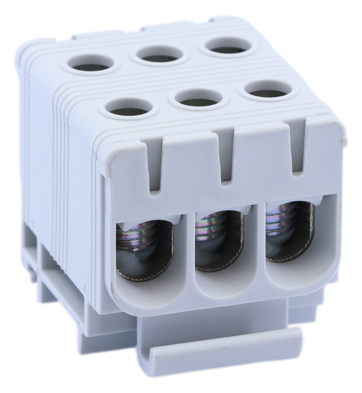 TRACON FLEAL-50/3 Főáramköri leágazó kapocs, sínre szerelhető, szürke 6-50mm2, max. 1000VAC/1500VDC, max.160A