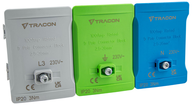 TRACON FSK35F Fővezetéki sorozatkapocs, plombálható, fekete 2x35mm2 / 3x35mm2, 690VAC, 100A