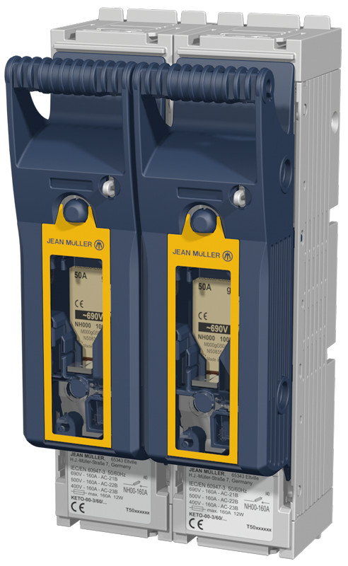 TRACON KETO-3-2/F Szakaszolókapcsoló-biztosító,szerelőlapra, lapos csatlakozó 690VAC, 440VDC, 630A, 2P, NH3
