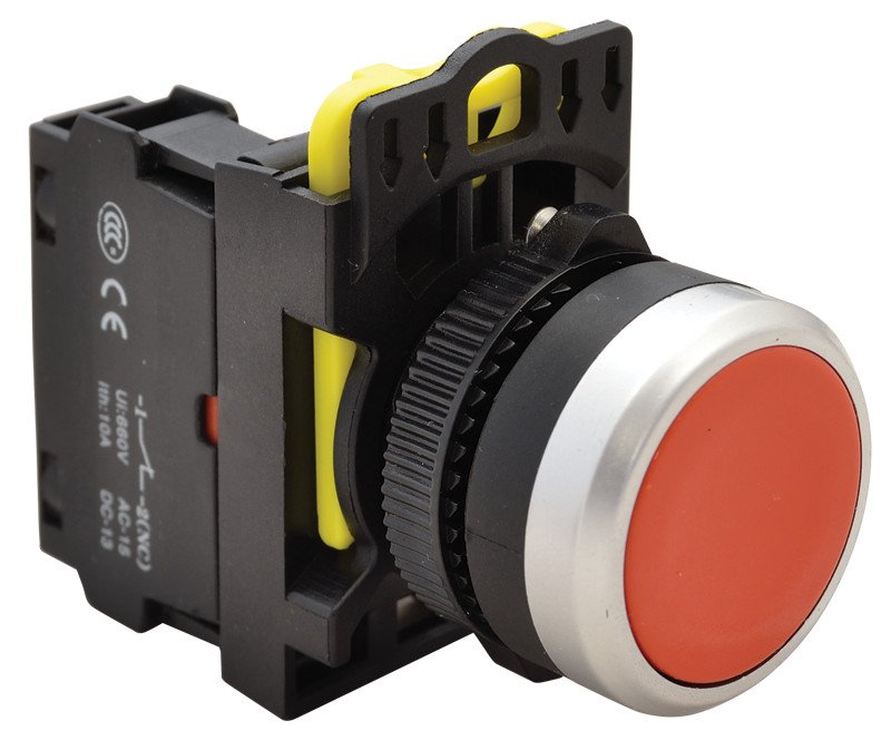 TRACON NYK3-R Egyszerű nyomókapcsoló, piros 1×NC, 5A/230V AC-15, IP65
