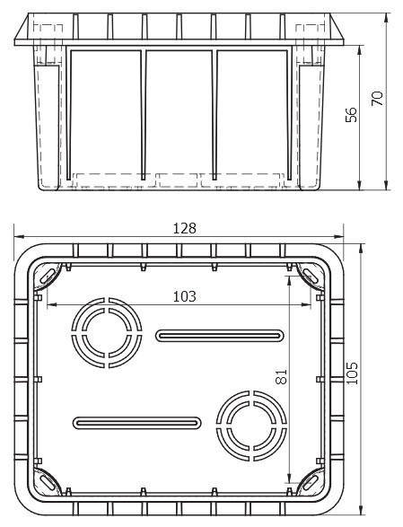 TRACON S128X105 Süllyesztett kötődoboz 128×105x70(56) mm, IP40