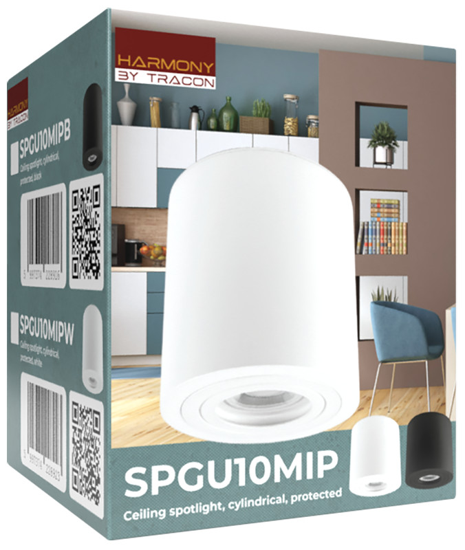 TRACON SPGU10MIPW Mennyezeti védett spot lámpatest, hengeres, fehér 100-240VAC, 50Hz, 1xGU10, max.35W, IP44