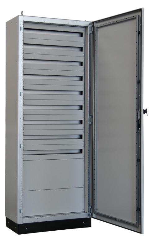 TRACON TGEFM8021040M Moduláris (sorolható)fém elosztószekrény DIN-Rail modulokkal W×L×H=800×2100×400/324M (9×36) + szer.lap 1×150, 1×200, IP54