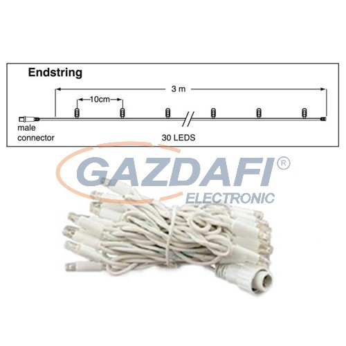 TRONIX 010-128 LED zárószál fényfüggönyhöz, 3 m, 30 LED, fehér kábel, meleg fehér fény, IP44