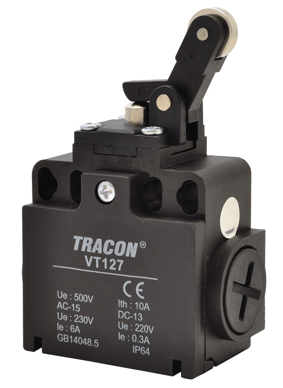 TRACON VT127 Helyzetkapcsoló, nyomógörgős 1xNO+1xNC, 6A/230V AC-15, 0,3A/250V DC-13, IP65