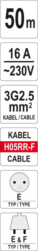 YATO YT-8108 Kábeldob 50 fm 3G2,5 mm2 H05RR-F általános leírása: