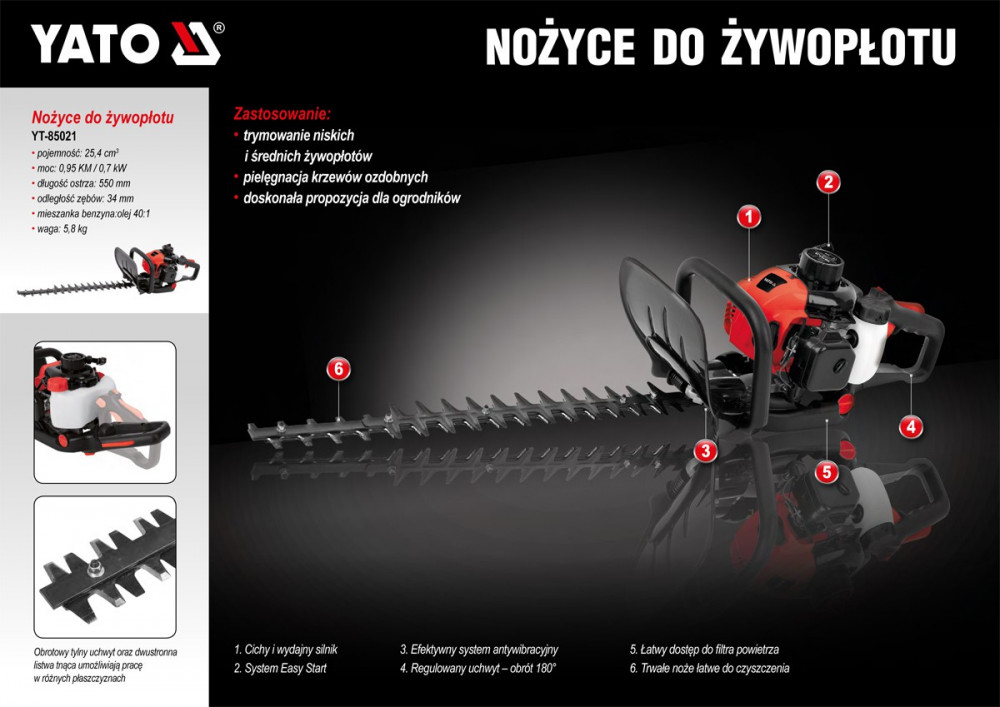 YATO YT-85021 Sövényvágó 25,4 cm3 0,7kW benzines