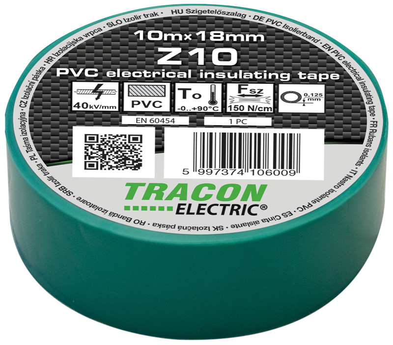 TRACON Z10 Szigetelőszalag, zöld 10m×18mm, PVC, 0-90°C, 40kV/mm