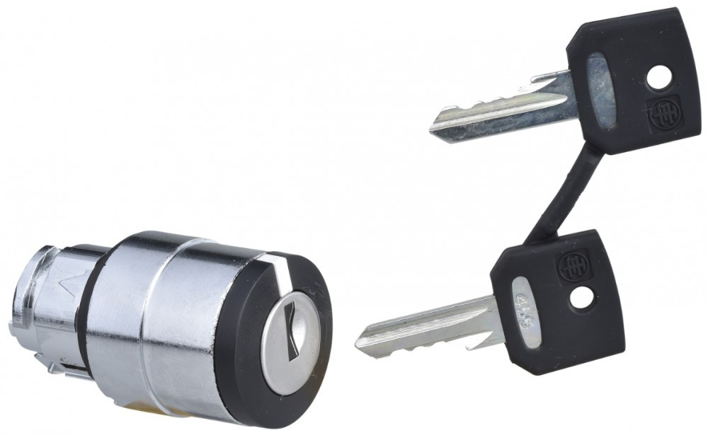 Harmony fém választókapcsoló fej, Ø22, 455 kulcsos, jobb pozícióban kivehető, balról visszatérő, 3 állású