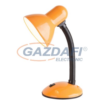 Időtlen megjelenésű asztali lámpa 1 db foglalattal. 23 cm széles, 34,5 cm magas, narancssárga színű műanyag lámpatest és pozícionálható lámpabúra. A lámpatest E27-es foglalatú, max. 40W teljesítményű energiatakarékos fényforrással is használható.