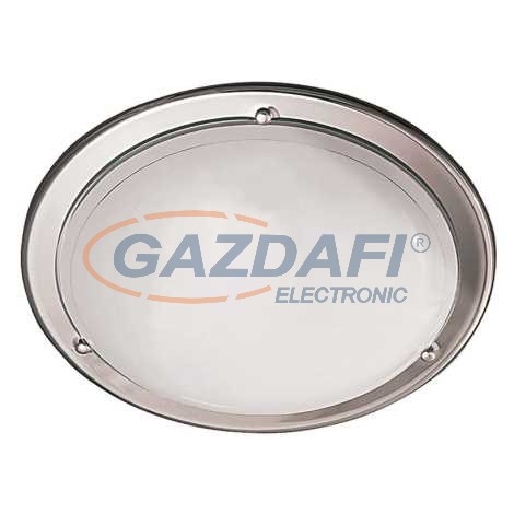 Időtlen megjelenésű, fém és üveg kombinációjú mennyezeti lámpa, 2 darab E27-es foglalattal. 38 cm átmérőjű, króm színű fém lámpatest, fehér színű opálüvegbúrával. A lámpatest E27-es, max. 2x 60W teljesítményű energiatakarékos fényforrásokkal is használható. Kialakításának köszönhetően a fényforrások cseréje, illetve a lámpatest tisztítása gyorsan és egyszerűen elvégezhető.