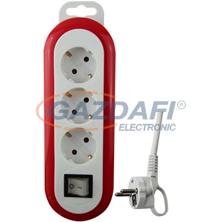 GAO 0553H Asztali elosztó 3-as kapcsolóval, 1,4m, Meridian, fehér/piros
