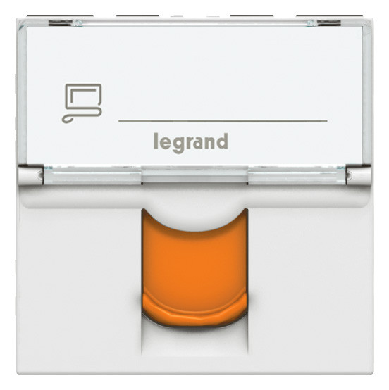 LEGRAND 076525 Program Mosaic LCS2 RJ45 aljzat Cat 6A STP, 2 modul,fehér,narancssárga redőnnyel