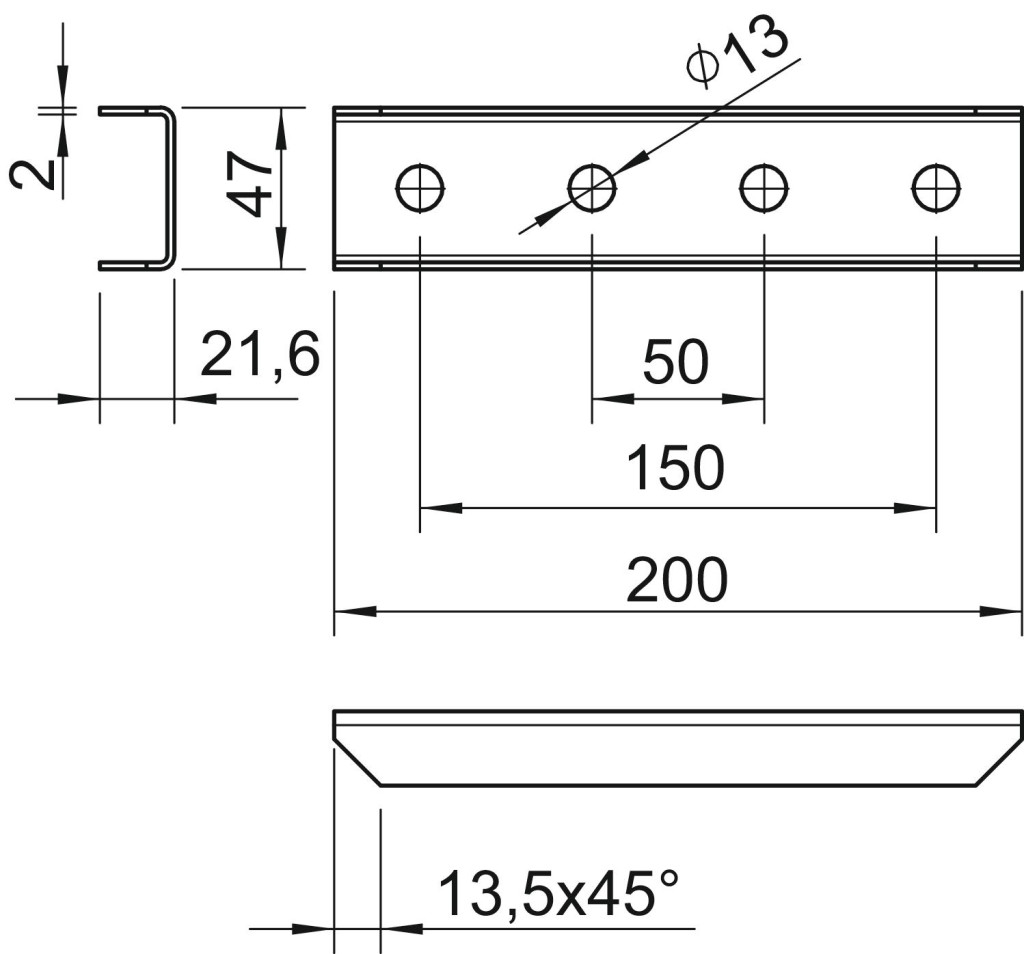 OBO 1124641 GVMS 4 ASV FT Összekötő U-profil, 4 furattal 200x48x30mm merítetten tűzihorganyzott acél