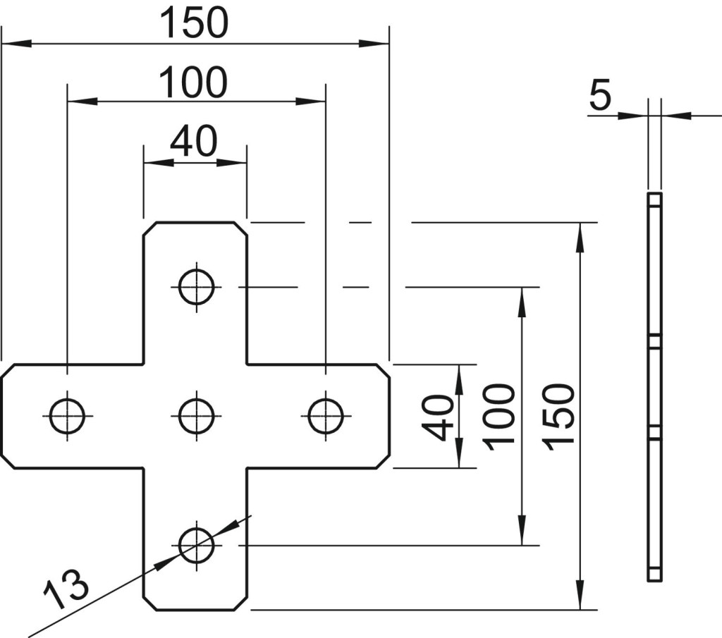 OBO 1124697 GMS 5 VP X V2A Összekötő Lemez X-alak 150x150x40x4mm rozsdamentes acél