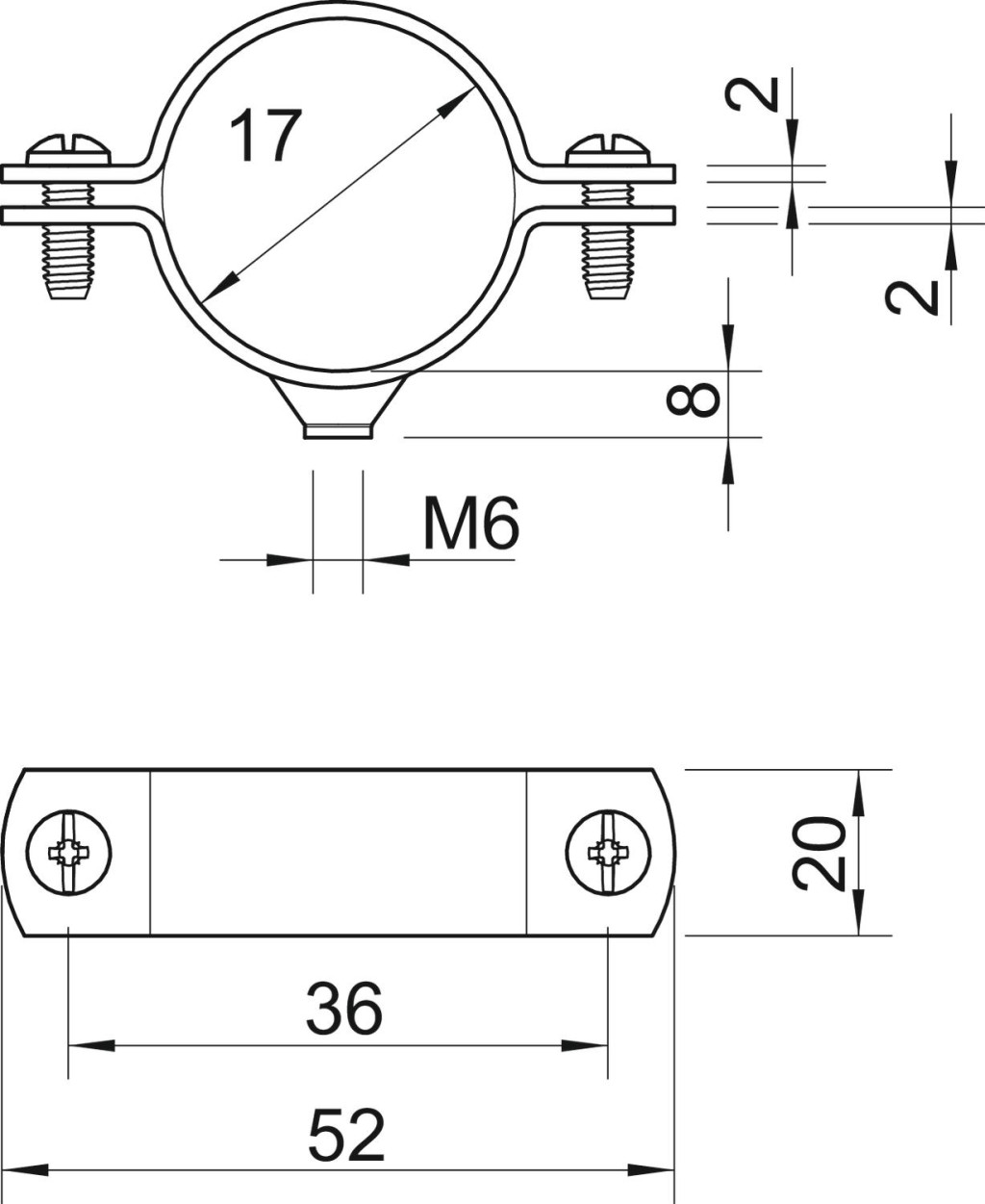 OBO 1385011 2900WM6 17 FT Távtartó Kengyel M6 menetes csatlakozóval, nehéz kivitel 3/8 merítetten tűzihorganyzott acél
