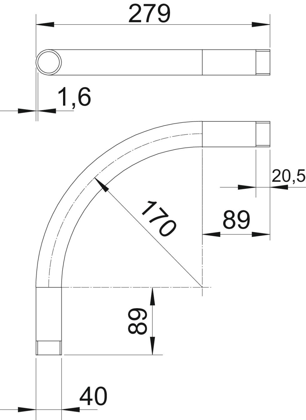 90°-os csőív elektromos védőcsövekhez az MSZ EN 61386-1 szerint, menetes végekkel az MSZ EN 60423 szerint. Sorjamentes belső fallal. Csőívenként egy darab összekötő karmantyú rá van csavarva.