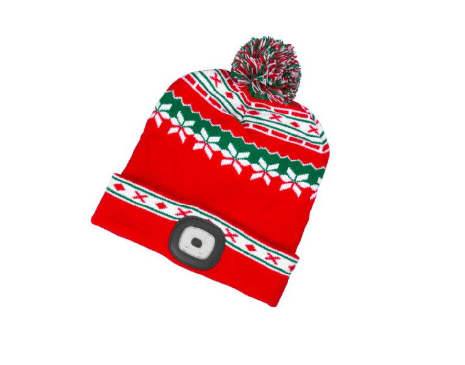 SG PRO x-mas piros-zöld Led-es bojtos sapka L, 4 x SMD LED, USB töltés