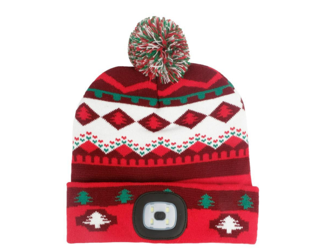 SG PRO X-mas piros-barna Led-es bojtos sapka L, 4 x SMD Led, USB töltés
