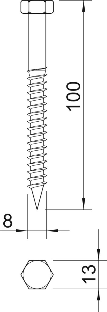 DIN 571 szerinti hatlapfejű csavar, facsavarmenettel. 910 típusú dübelhez alkalmas.
