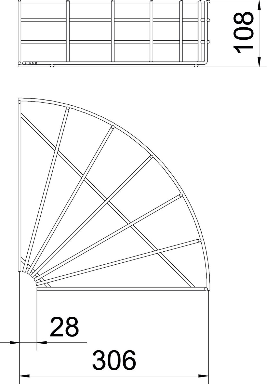 OBO 6002323 GRB 90 130 FT 90°-Os Ív Rácsos Kábeltálcához 105x300mm merítetten tűzihorganyzott acél