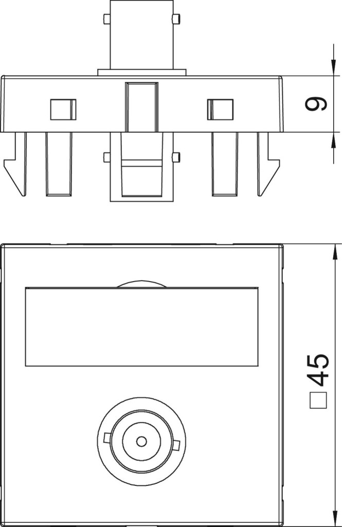 Multimédia tartó BNC csatlakozó aljzattal, egyenes kivitel, felirati mezővel, BNC átvezető, aljzataljzat kivitelben. A bepattinható rögzítés normál és 90 fokkal elforgatott beépítést is lehetővé tesz.