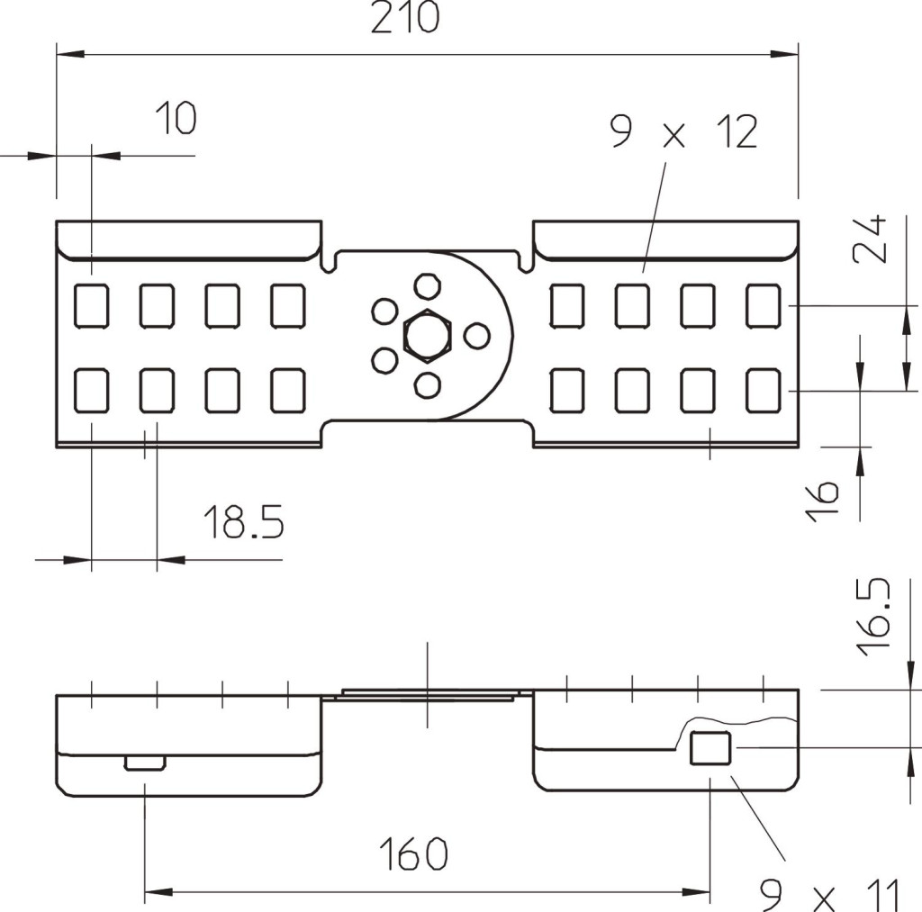 Csuklós összekötő a 60 mm oldalmagasságú, perforált oldallemezű kábellétrák és idomok, -a nyomvonal vertikális iránytöréseinél előforduló- toldókötéseinek szereléséhez. Az összekötőt a létrapofa külső oldalára kell felszerelni.